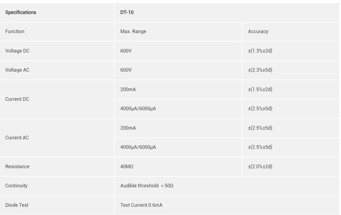 4000 counts, 8 functions including DCV, ACV, DCA, ACA, Resistance, Continuity, Diode test with Data Hold, Low impedance and non-contact ACV detection.
