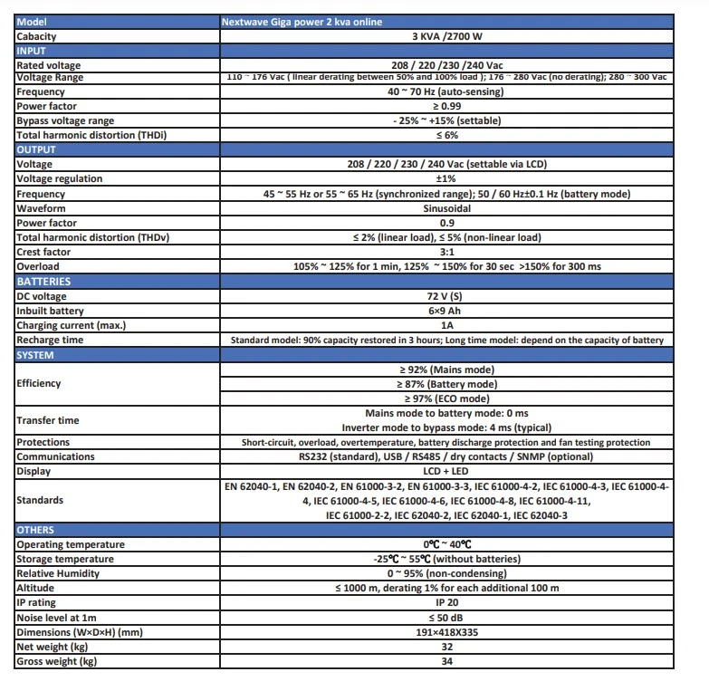 ● Quick and stable charging, 90% capacity restored in 3 h (standard model UPS)
