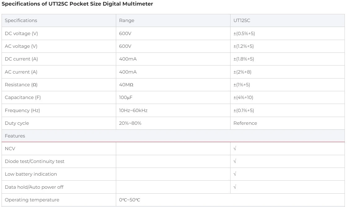 UNI-T UT125C Pocket Size Digital Multimeterجهازملتميتر صغير