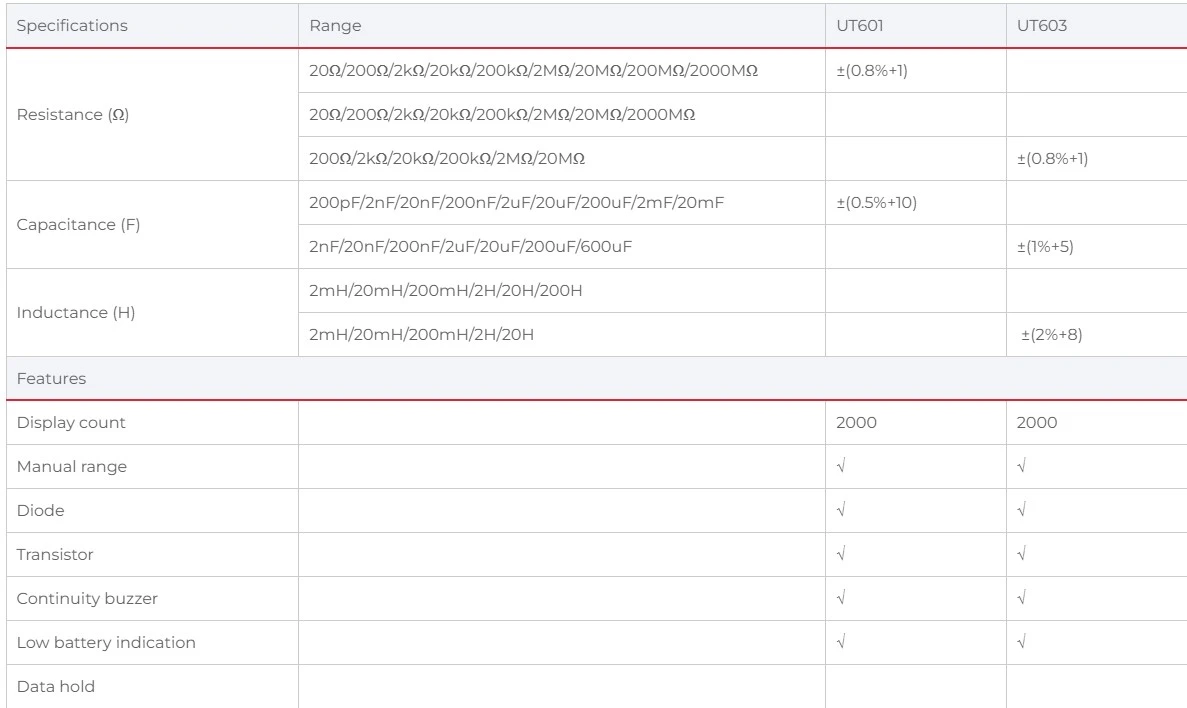 UT600 series digital inductance capacitance meters are used to test resistors, capacitors and inductors. They can also be used to measure transistor parameters.
